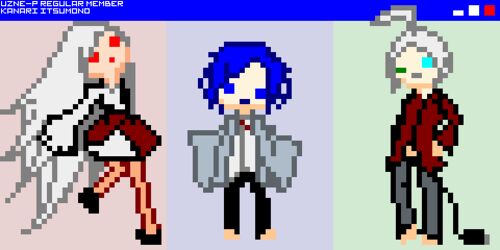 絵とか:#合成音声キャラを描こう 描きました。流通しているテンプレートのフォーマットをドット絵化したものです。 左上から…… 左上禰 Windowsのタイトルバーなので入れるしかないなとおもった フミキリーネ・クワン 枠におさまらないサイズ感を出したくて…