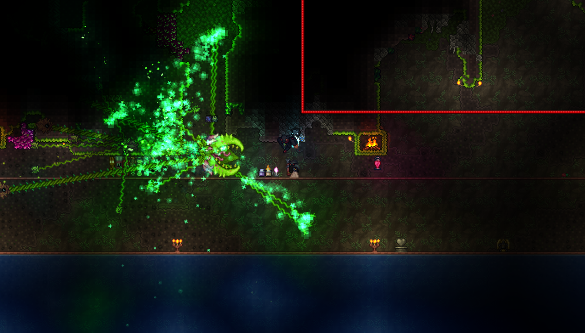 ……というわけでハメ技でInflux Waver(Martian Saucerからドロップする剣)を入手。1.3にはZenithがないんですがそのかわりにMOD追加武器「Tenebreus Tides」の材料になっています。比較的序盤にアミディアスさんから購入できる「Amidias' Trident」、リヴァイアサン&アナヒタのドロップアイテム「Atlantis」それと海で採れる素材Sea Prism・Tenebri・Lumenylを合成して作れる槍型武器。壁を貫通するしワーム系ボスにめっぽう強いしアストラムデウスは何故かこの武器に対する耐性を名指しで持ってるし
